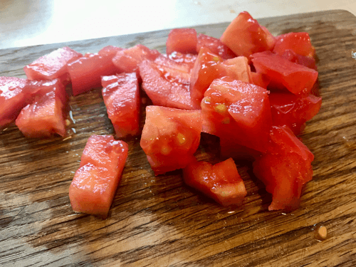 Помидор нарезать крупными кусочками.