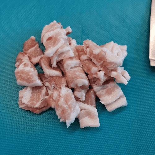Бекон нарезать небольшими слайсами.