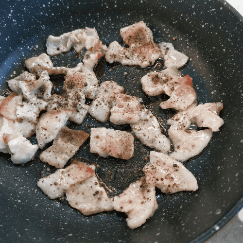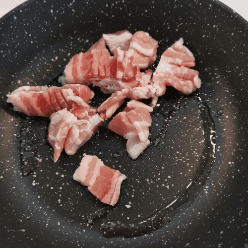 Выложить на сковороду бекон.