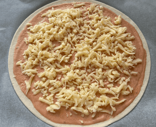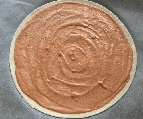 Намазать тесто соусом.