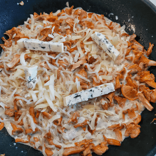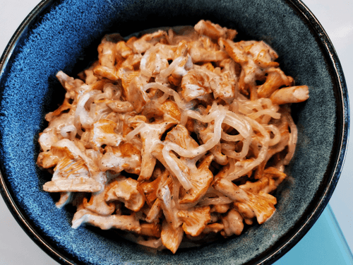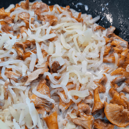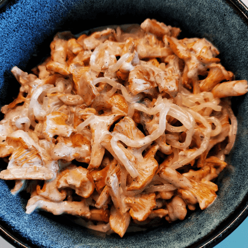 Спагетти ширатаки с лисичками — изысканное блюдо авторской кухни, которое объединяет нежные грибные нотки с кремовой текстурой сливочного соуса. Лисички, известные своим насыщенным лесным ароматом, в сочетании с лёгкими и диетическими ширатаки создают гармоничное блюдо, насыщенное вкусами и текстурами. Добавление сыров дорблю и моцареллы придаёт блюду глубину и сливочную мягкость, а мускатный орех акцентирует богатство вкуса. Это блюдо идеально подходит для тех, кто ценит гастрономические эксперименты и хочет насладиться лёгким, но насыщенным ужином. Подавать его лучше всего горячим, чтобы сыр полностью раскрыл свою текстуру и аромат.