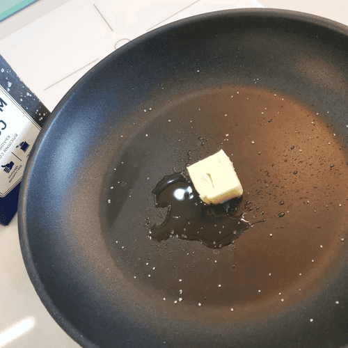 В сковороде разогреть сливочное и оливковое масло с щепоткой крупной соли.