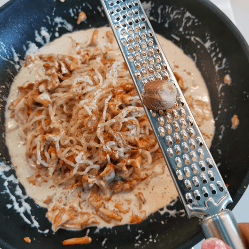 Через 1 минуту добавить мускатный орех, перемешать и снять с огня.
