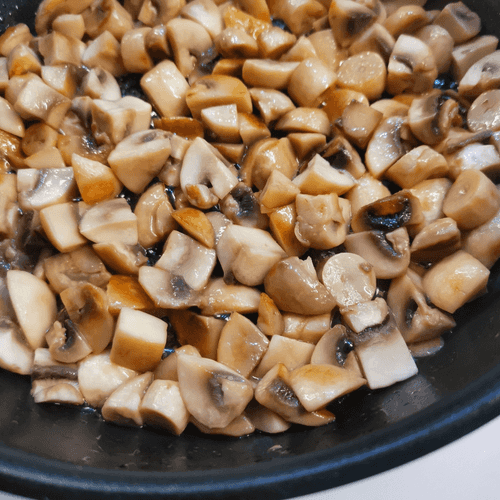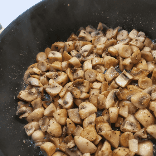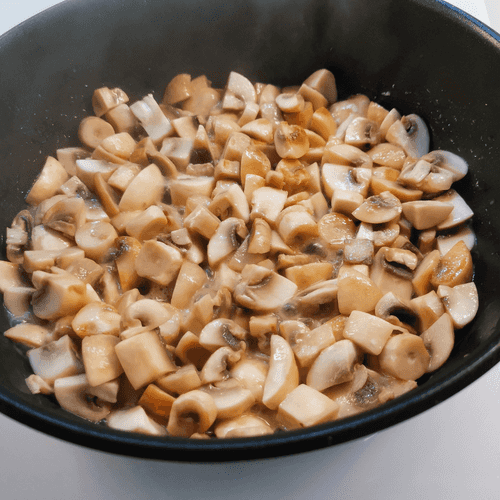 Как только грибы слегка подрумянятся, перемешать. Убавить огонь.
