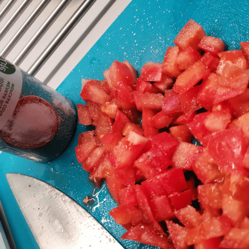 Помидоры мелко нарезать и посолить.