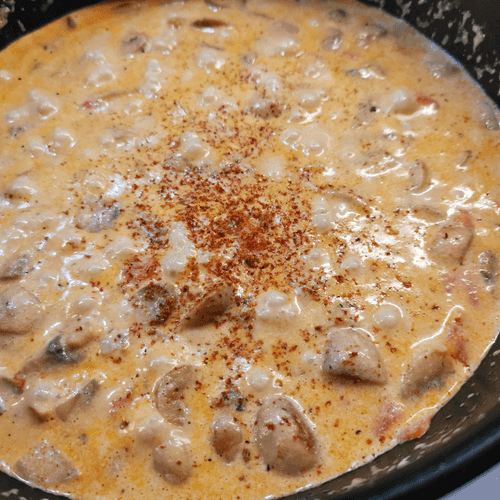 Кето-спагетти с грибами — это нежное сочетание сливочной текстуры и насыщенного грибного аромата. Этот рецепт воплощает философию низкоуглеводного питания, предлагая легкий, но сытный ужин. Основа блюда — спагетти ширатаки, которые прекрасно впитывают вкусы ингредиентов, дополняя их своей мягкостью. Шампиньоны, томаты и сыр дорблю создают богатую вкусовую палитру, а мускатный орех и смесь молотых перцев придают пикантные нотки. Исторически, кето-кухня возникла как способ питания, поддерживающий низкий уровень углеводов, а авторское исполнение этого рецепта делает его элегантным и изысканным. Идеально подходит для гурманов, ищущих баланс между полезным питанием и гастрономическим наслаждением.