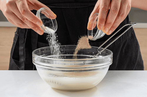 Добавить в смесь дрожжи и сахар. Еще раз размешать.