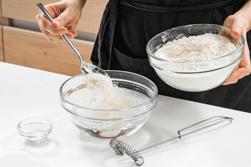 Смешать воду комнатной температуры, 8 грамм соли и 2 столовые ложки муки.