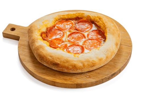 Смазать тесто для пиццы соусом, далее выложить нарезанную моцареллу и пепперони. Выпекать 5–10 минут при 230 градусах, до аппетитной румяности.