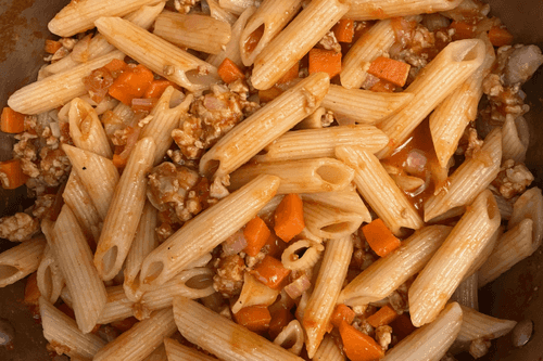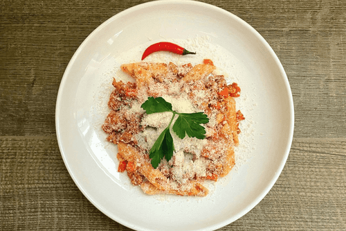 Паста с кроликом и соусом болоньезе — утонченное сочетание традиционной итальянской кухни с нежным, диетическим мясом. Болоньезе, обычно готовящийся с говядиной, приобретает новую глубину вкуса благодаря кролику, который делает соус более мягким и изысканным. Обжаренные овощи — морковь, лук и чеснок — дополняют его сладковатым ароматом, а тайский острый перец добавляет пикантности. Томатный сок наполняет блюдо насыщенной кислинкой, а петрушка освежает вкус. Отваренная до аль денте паста впитывает соус, создавая гармонию текстур. Завершающий штрих — тертый сыр гравьера, придающий сливочную нежность. Это блюдо идеально подходит для уютного семейного ужина или романтического вечера, предлагая гармонию вкуса и итальянскую атмосферу.