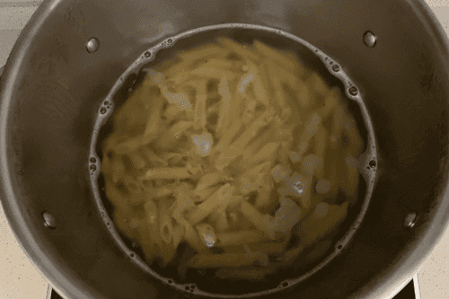 Отварить пасту до состояния аль денте. Откинуть на дуршлаг, оставив один половник воды, в которой варилась паста.