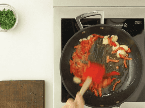 Как только чеснок размягчится, добавить мелко нарубленную петрушку, перемешать и снять с огня.