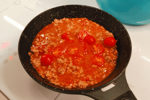 Добавить черри в соус. Тушить, помешивая, около 5–7 минут.