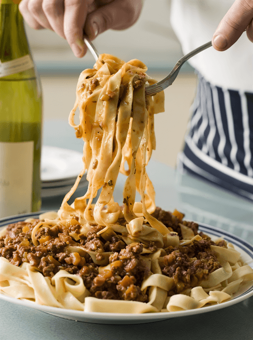 Тальятелле с говяжьим рагу — истинное воплощение итальянской гастрономии, родом из региона Эмилия-Романья, где паста и мясные соусы сливаются в гармоничную симфонию вкусов. Густое, ароматное рагу, пропитанное терпкостью красного вина и насыщенной томатной пасты, медленно томится, раскрывая глубину мясных нот и пикантность бекона. Тальятелле, широкие ленты пасты, идеально удерживают соус, обеспечивая насыщенность каждого укуса. Это блюдо — душевное и уютное, идеально подходящее для неспешных семейных обедов и ужинов. Его подают горячим, щедро посыпанным тертым пармезаном, который добавляет легкую ореховую нотку. Сочетание нежной пасты и сочного рагу делает этот рецепт одним из самых любимых в итальянской кухне, даря наслаждение с каждым кусочком.
