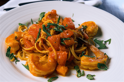 Паста с креветками, сливочно-томатным соусом и вермутом