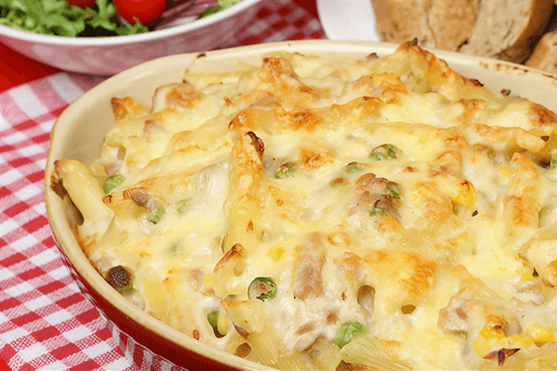 Тщательно перемешав, выложить макароны в жаропрочную емкость для выпечки (не стекло) и отправить в духовку, разогретую до 190 градусов. Запекать 15 минут на средней полке.