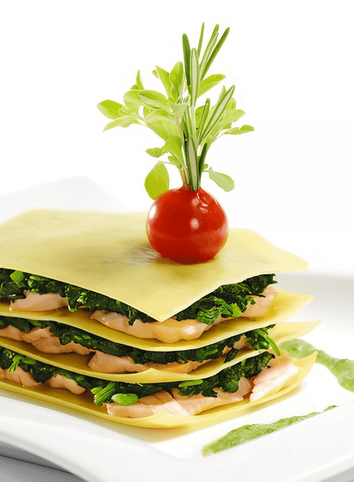 Лазанья из лосося, креветок и шпината — элегантное блюдо итальянской кухни, сочетающее в себе утонченность морепродуктов и нежность сливочного соуса. Этот рецепт вдохновлен традиционной лазаньей, но приобретает свежий морской акцент благодаря лососю и королевским креветкам. Шпинат добавляет блюду яркость и легкость, а пармезан придаёт ему изысканный аромат. Нежные слои пасты, пропитанные белым соусом, создают гармоничное сочетание текстур. Лазанья идеально подходит для особых случаев и романтического ужина. Ее насыщенный вкус, деликатное сочетание ингредиентов и аппетитная запеченная корочка делают каждую порцию настоящим гастрономическим удовольствием.