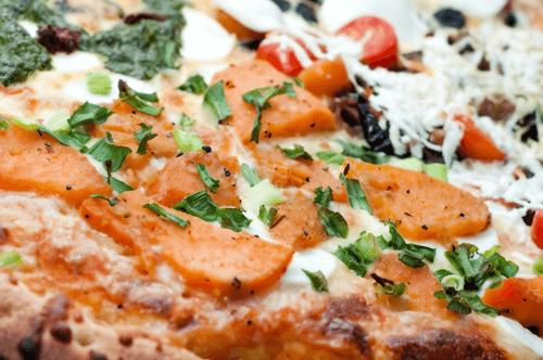 Пицца с тыквой и копченым салом