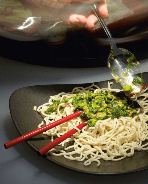 Пшеничная лапша с соусом из зеленого лука и имбиря