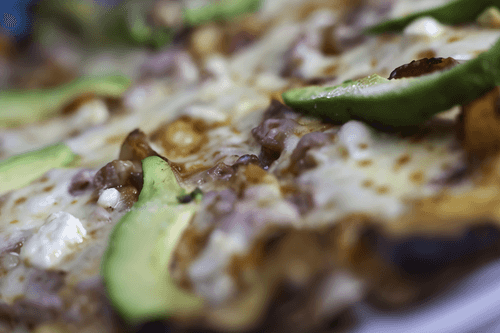Пицца с авокадо, ветчиной и сыром