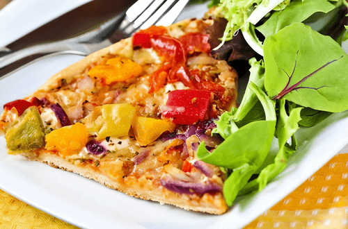 Пицца с помидорами, сельдереем, перцем, цукини и двумя видами сыра