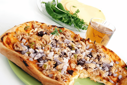 Пицца с жареной щукой и копченой мойвой