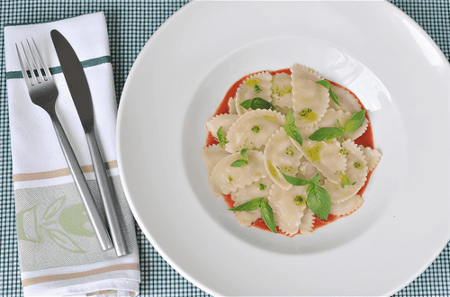 Равиоли с сыром скаморца и свежим базиликом