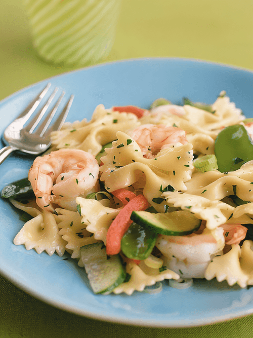 Паста фарфалле в сливочном соусе с креветками