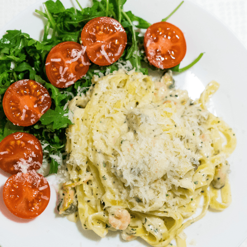 Феттучини с креветками под сливочным соусом – это блюдо, воплощающее элегантность итальянской кухни. Легенда гласит, что паста феттучини зародилась в Риме и быстро завоевала сердца гурманов по всему миру. В этом рецепте нежные креветки гармонично сочетаются с бархатистым соусом на основе сливок, сливочного масла и ароматных трав. Вкус – утонченный, мягкий, с нежными морскими нотками, подчеркнутыми пикантностью пармезана и свежестью базилика. Это блюдо идеально подходит как для уютного ужина, так и для торжественного застолья. Феттучини, приготовленные аль денте, обволакиваются соусом, создавая неповторимое сочетание текстур. Подача с креветками и зеленью делает его не только вкусным, но и эстетически привлекательным, достойным ресторанного уровня.