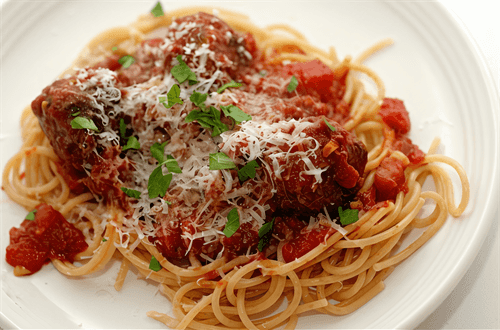 Мясные шарики со спагетти в томатном соусе