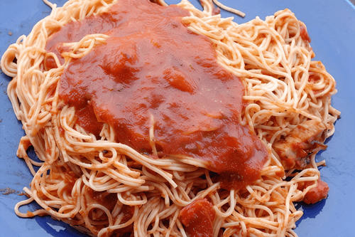 Пасту добавить в кастрюлю с соусом, подлить немного сохраненного бульона, чтобы блюдо было достаточно сочным.