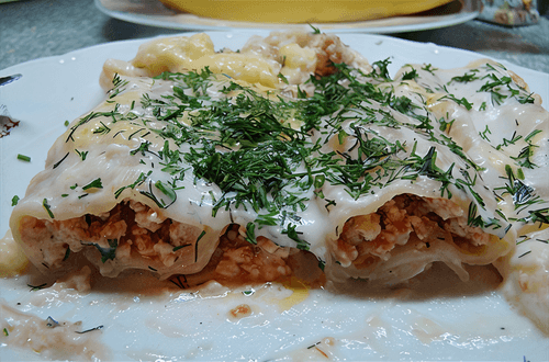 Каннеллони с мясной начинкой под соусом бешамель
