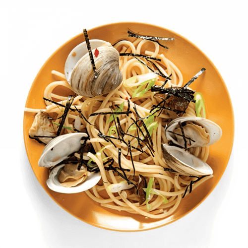 Лингвини с мидиями в японском стиле — это утонченное сочетание европейской пасты с ароматами японской кухни. Этот рецепт объединяет нежные моллюски, пикантные грибы шиитаке и насыщенный вкус саке, создавая гармоничное блюдо, наполненное умами. Легкая острота чили-пудры добавляет глубину вкусу, а чеснок придаёт пряный акцент. Соевый соус смягчает ингредиенты, связывая их в единый ансамбль, а сливочное масло обволакивает лингвини шелковистой текстурой. Нежные полоски нори и свежий шнитт-лук завершают композицию, подчеркивая японские корни блюда. Это идеальный выбор для тех, кто любит сочетание морских и пряных нот, а также предпочитает блюда с богатым вкусовым профилем. Блюдо подают горячим, оно идеально сочетается с белым сухим вином или традиционным японским саке.