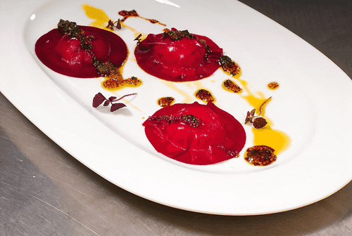 Авторы этого уникального блюда — новозеландский шеф и его английская коллега, которые уже долгое время трудятся в России. Они создали оригинальную комбинацию, в которой копченая рыба смешивается со сметаной и свежими веточками укропа. Для подачи этого гастрономического творения используется тонкая оболочка из маринованной свеклы, что придает пельменям интересный вид, несмотря на обычные ингредиенты.