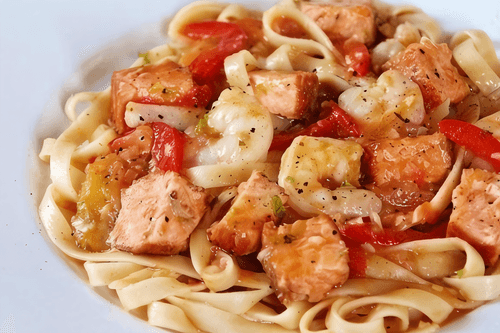 Фетуччини с острыми креветками и лососем