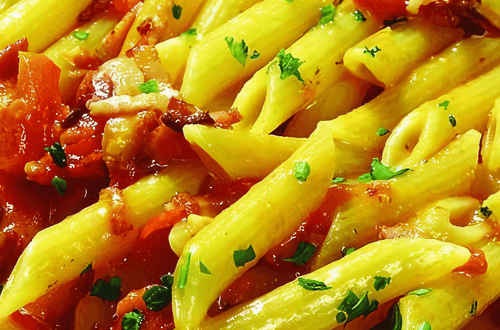 Паста с беконом и сыром — это классическое итальянское блюдо, воплощающее баланс насыщенного вкуса и нежной текстуры. Его корни уходят в домашнюю кухню Италии, где простота ингредиентов сочетается с утонченностью вкуса. Копченый бекон придает блюду глубину, а красный перец чили добавляет пикантные нотки, создавая идеальный контраст. Сладость помидоров черри смягчает остроту, а твердый сыр дарит сливочную текстуру. Итальянские травы наполняют блюдо ароматом средиземноморских полей. Эта паста прекрасно подходит для уютного ужина, сочетаясь с красным вином или свежими овощами. Готовится она быстро, но оставляет незабываемые впечатления, позволяя насладиться гармонией вкуса и аромата в каждом кусочке.