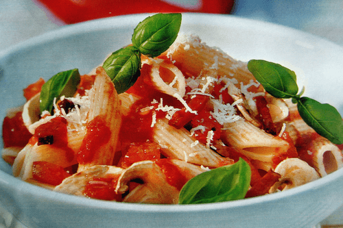 Паста с томатным соусом, оливками и каперсами