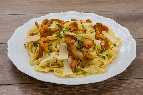 Тальятелле с лисичками – это изысканное блюдо европейской кухни, воплощающее дух осени. Лисички, известные своим ореховым вкусом и нежной текстурой, превосходно сочетаются с шелковистой пастой и ароматом чеснока. Приготовление начинается с обжаривания грибов на сливочном и оливковом масле, что раскрывает их насыщенный вкус. Добавление пасты, сваренной в подсоленной воде, создаёт гармоничный баланс между насыщенностью грибов и лёгкостью тальятелле. Посыпанная крупными хлопьями пармезана и свежей петрушкой, эта паста становится настоящим кулинарным шедевром. Блюдо идеально подходит как для уютного семейного ужина, так и для торжественного случая. Лисички придают ему утончённый характер, который покоряет с первого укуса.