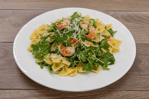 Фарфалле с креветками и рукколой — это утонченное блюдо европейской кухни, в котором нежная паста гармонично сочетается с ароматом морепродуктов и свежести зелени. Родом из итальянской гастрономии, фарфалле, благодаря своей оригинальной форме, идеально удерживает соус, обогащая вкус каждого кусочка. Креветки, пропитанные белым вином и легким чесночным ароматом, приобретают насыщенный, слегка сладковатый привкус, а перец чили добавляет тонкую пикантность. Рукола, с характерной горчинкой, освежает и балансирует композицию, а пармезан завершает блюдо своим насыщенным вкусом. Это изысканное угощение отлично подходит как для уютного ужина, так и для праздничного застолья, придавая трапезе атмосферу средиземноморской элегантности.