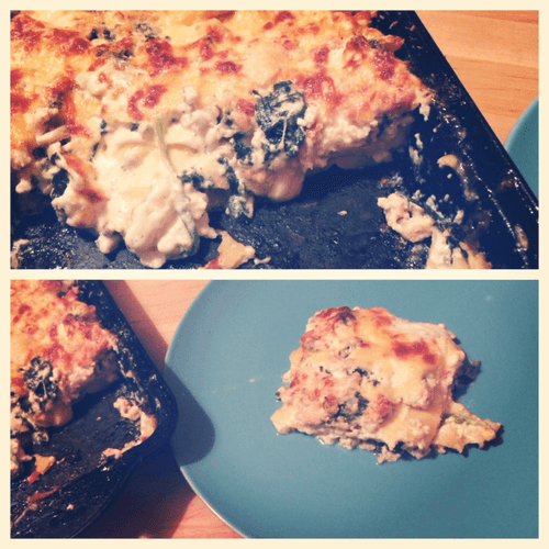 Румяная лазанья со шпинатом и курицей под соусом бешамель