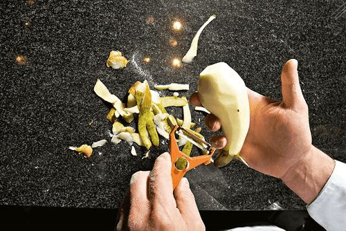 Затем нужно очистить свежую грушу — лучше овощечисткой. Можно проделать эту операцию и ножом, но в этом случае надо быть крайне осторожным, чтобы мякоть груши пострадала как можно меньше.