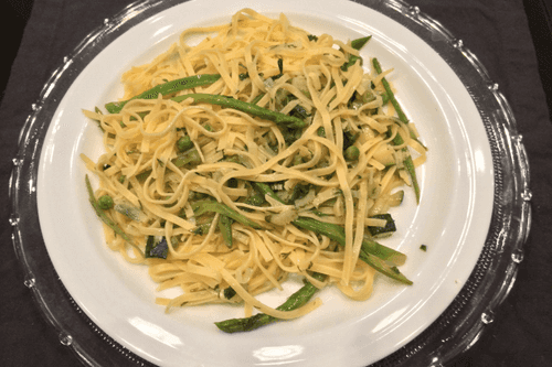 Феттучини со спаржей и молодым горошком — это истинное воплощение весны на тарелке. Блюдо родом из Италии, где паста является неотъемлемой частью кулинарной культуры. Нежные полоски спаржи и свежий зеленый горошек придают ему легкость и свежесть, а белое вино обогащает вкус мягкими фруктовыми нотками. Лук-порей и чеснок добавляют аромата, а тонкие ломтики цукини и сельдерея — нежности. Тонко натертый грана-падано завершает композицию, придавая блюду пикантность. Легкость этого феттучини делает его идеальным выбором для теплых весенних и летних дней, а изысканный вкус позволяет подавать его как на повседневный ужин, так и на особые случаи. Эта паста станет отличным спутником бокала белого вина, создавая атмосферу средиземноморской гармонии и наслаждения.