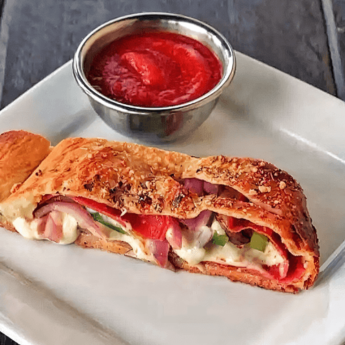 Кальцоне с соусом маринара – это классический итальянский пирог, который напоминает закрытую пиццу, но обладает особенным характером. Его корни уходят в Неаполь, где он стал любимым уличным угощением. Хрустящее тесто, запеченное до золотистой корочки, скрывает сочную начинку из ароматной сырокопченой колбасы, грибов, свежего зеленого перца и тянущейся моцареллы. В завершение его обогащает пикантный соус маринара – густой, насыщенный вкусом томатов, чеснока и пряных трав. Кальцоне идеально подходит для уютных домашних ужинов или дружеских встреч, радуя насыщенным вкусом и аппетитным ароматом. Подавать его лучше горячим, разрезая на порционные кусочки и обмакивая в теплый соус. Это блюдо – настоящее итальянское наслаждение в каждом кусочке!