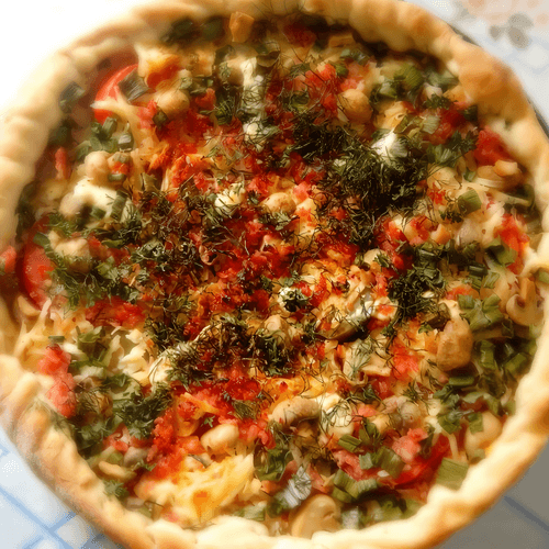 Летняя пицца с колбасой и овощами