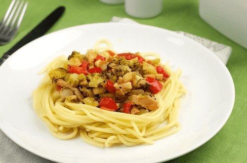 Овощные спагетти – это изысканное блюдо итальянской кухни, сочетающее свежие, запечённые овощи и классическую пасту. Оно восходит к традициям Средиземноморья, где овощи играют важную роль в питании. Запечённые баклажаны, помидоры и сладкий перец придают блюду насыщенный, слегка сладковатый вкус с приятной дымкой. А панировочные сухари, обжаренные на оливковом масле, добавляют хрустящую текстуру. Заправка из уксуса, зелени и чеснока подчеркивает натуральную свежесть ингредиентов. Это лёгкое, но сытное блюдо идеально подойдёт для тех, кто ценит вкусную и полезную пищу. Оно прекрасно сочетается с белым вином или свежими салатами, а его простота делает его отличным выбором для домашнего ужина или угощения гостей.