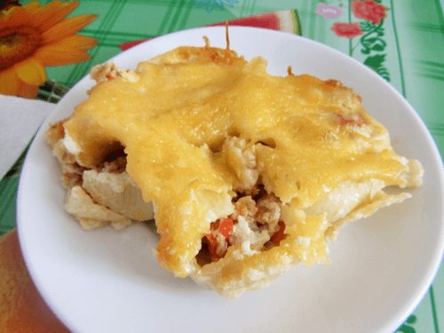 Каннеллони с курицей и грибами под соусом бешамель