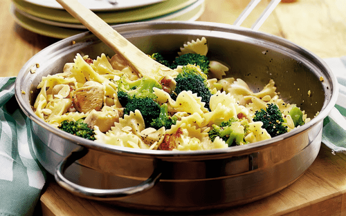 Фарфалле с курицей, брокколи и грибами в сырном соусе