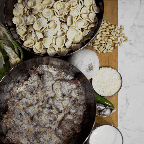 Изысканные ореккьете с фрикадельками, листовой капустой и кедровыми орешками