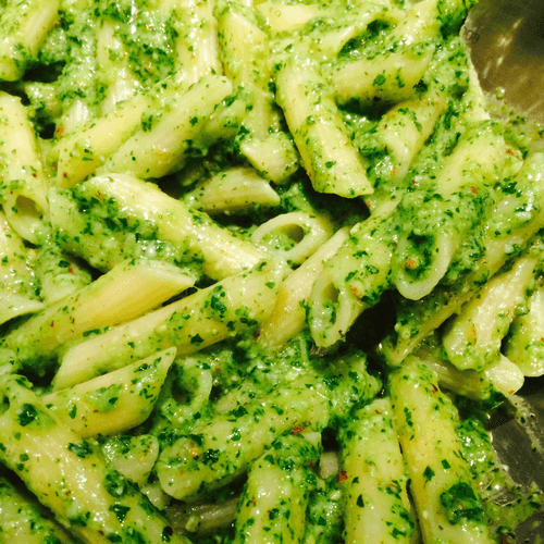 Пенне с песто из базилика и рукколы с фундуком — изысканное блюдо европейской кухни, которое сочетает в себе свежесть зелени, ореховую нотку фундука и насыщенный вкус пармезана. Песто, являющийся сердцем этого рецепта, имеет древние итальянские корни и традиционно готовится с использованием базилика, оливкового масла и сыра. В этом варианте руккола добавляет легкую пикантность, а фундук — кремовую текстуру. Соус идеально обволакивает аль-денте пенне, создавая гармонию вкусов. Блюдо подается горячим, и его можно дополнить свежими томатами или каплей лимонного сока для еще большей выразительности. Идеальный выбор для романтического ужина или семейного застолья, дарящий вкус лета и средиземноморской гастрономии.