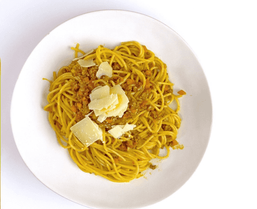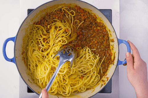Хотя в этом рецепте присутствует множество компонентов, основными остаются спагетти, мясной фарш и помидоры. Остальные ингредиенты, включая специи и приправы, служат для того, чтобы подчеркнуть вкус и аромат готового блюда. В традиционном варианте болоньезе обычно применяются более широкие тальятелле, однако и со спагетти этот вариант не менее вкусен.